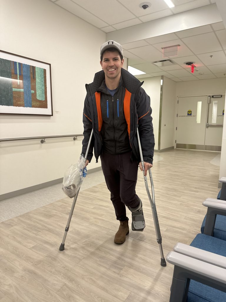 With my foot trapped in a splint, the first two weeks after surgery were hard. Three weeks of strict nonweight bearing are normal, which means you’re either on crutches, a knee scooter, or a walker depending on your coordination and home setup. I even tried one of those weird knee crutches that makes you look like a pirate, but I found it way too cumbersome. I went with crutches, because our house had a lot of stairs, and knee scooters are a pain to lug up and down. But crutches occupy your hands, so I couldn’t carry anything from the kitchen to the living room, and I felt a little helpless army crawling my dinner plate across the living room floor.